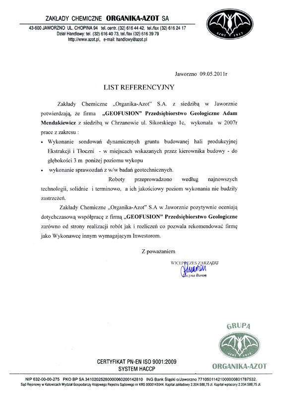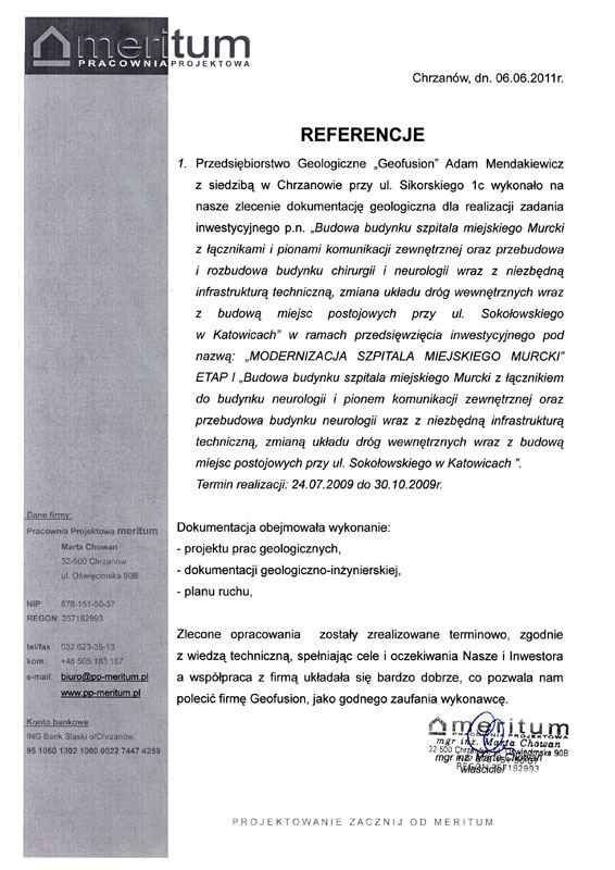 Właściciel firmy – Adam Mendakiewicz już od połowy lat 90 do 2006 r. pracował w kilku znaczących przedsiębiorstwach związanych z szeroko rozumianymi naukami o ziemi. Początkowo brał udział w badaniach geofizycznych (elektrooporowych) prowadzonych głównie na terenie Górnośląskiego Zagłębia Węglowego, uczestniczył także w pracach dotyczących uzdatniania podłoża na terenach dawnego, płytkiego górnictwa. W okresie tym zajmował się również problematyką odpadów pogórniczych i ochrony środowiska.